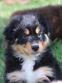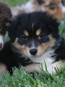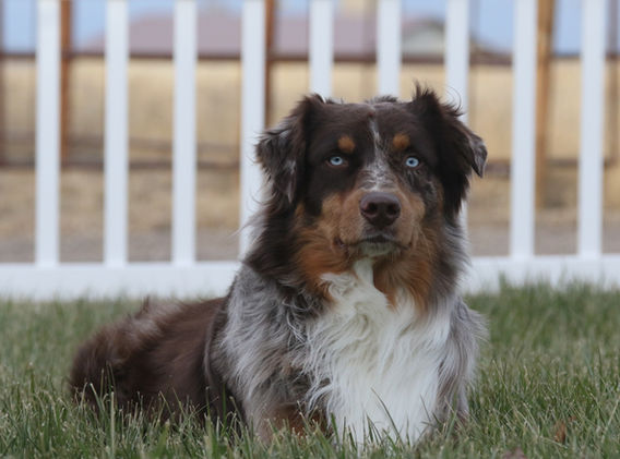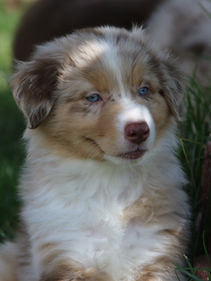 Notice that the males are all merles and our females are tris - that is because we do not breed merle to merle to risk deaf and blind puppies!
